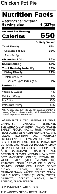 Our Chicken Pot Pie is a classic, with a flaky pastry crust enveloping a hearty mix of chicken, vegetables, and a creamy sauce. It’s the epitome of home-style comfort, ideal for cozy nights in.